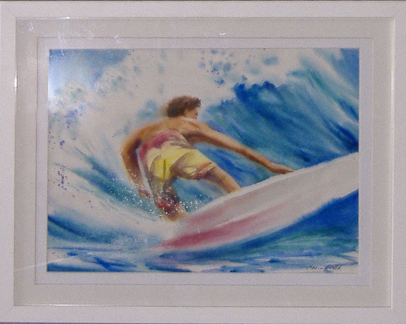 Scattered Arts water colour tutor, Maria Fields, has many exciting paintings to choose from including "The Surfer".
