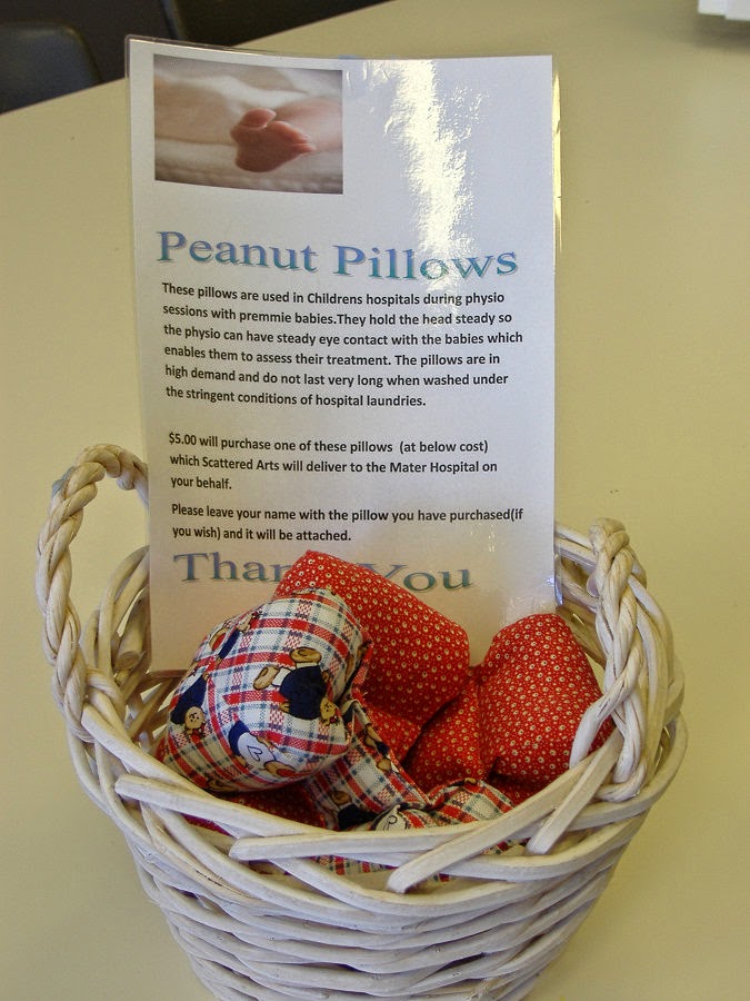 Peanut Pillows. These are made by our generous member Ailsa McEvoy for use in hospitals by physios for premmie babies.