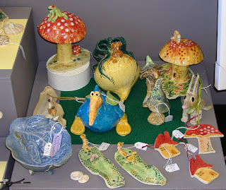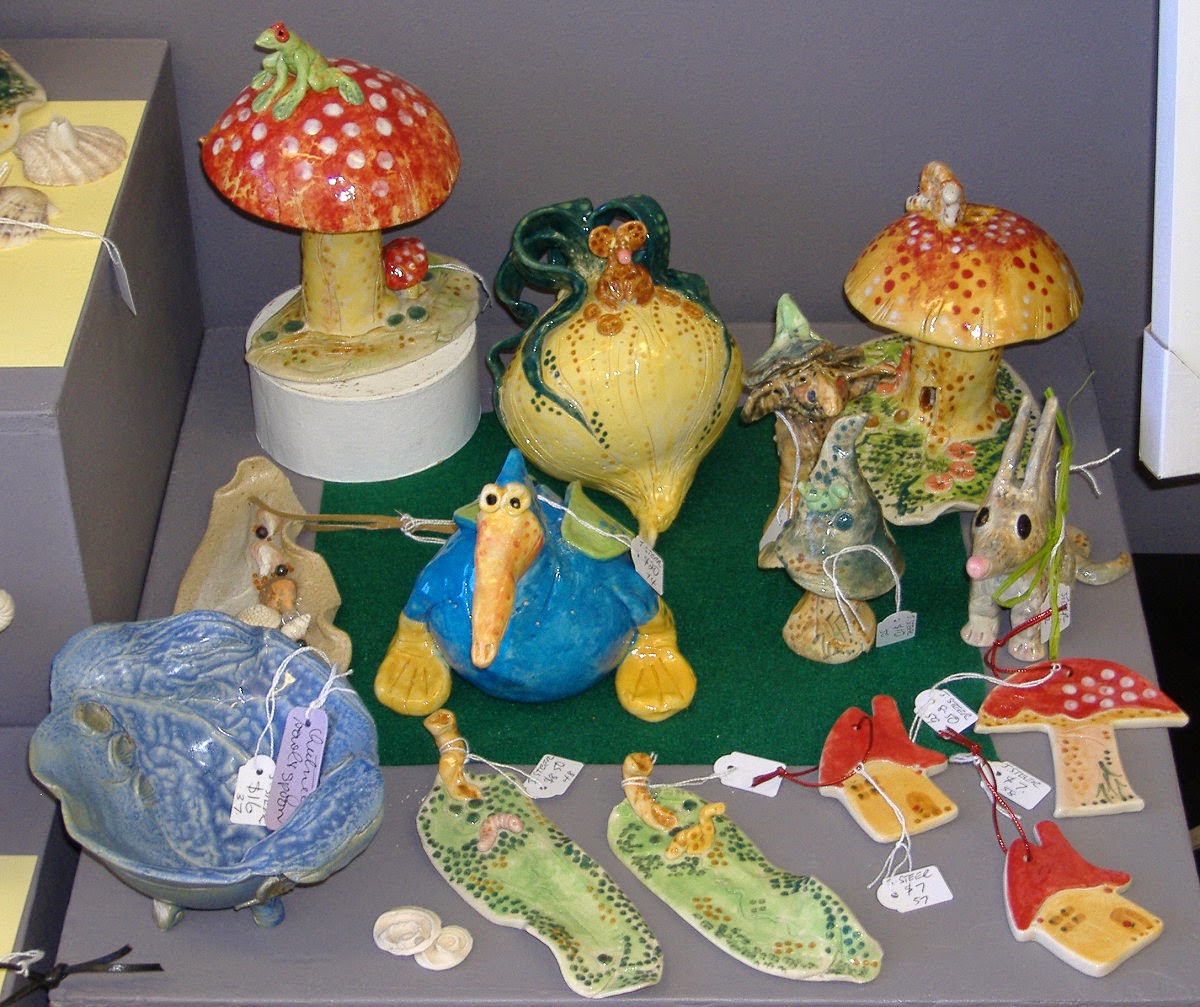 An assortment of pottery by our talented artist Jan, just in time for Christmas. Bilby, pelican, mushrooms, fairy houses, bowls & more.