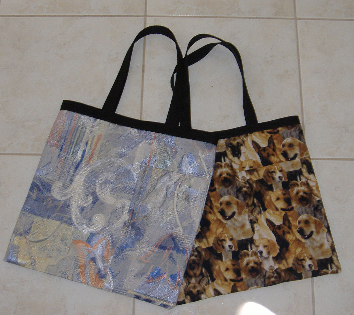 Versatile carry bags by Lorraine Mc with front pocket for umbrella, phone or keys.