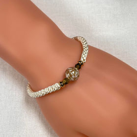 Many of Gabi’s Kumihimo braided pieces incorporate glass beads, gemstones or antique silver centre beads. A variety of colours, cords, beads and little ornaments can be incorporated in this fine ancient art of Japanese Braiding. Gabi developed her own techniques and styles by creating individual bracelets and